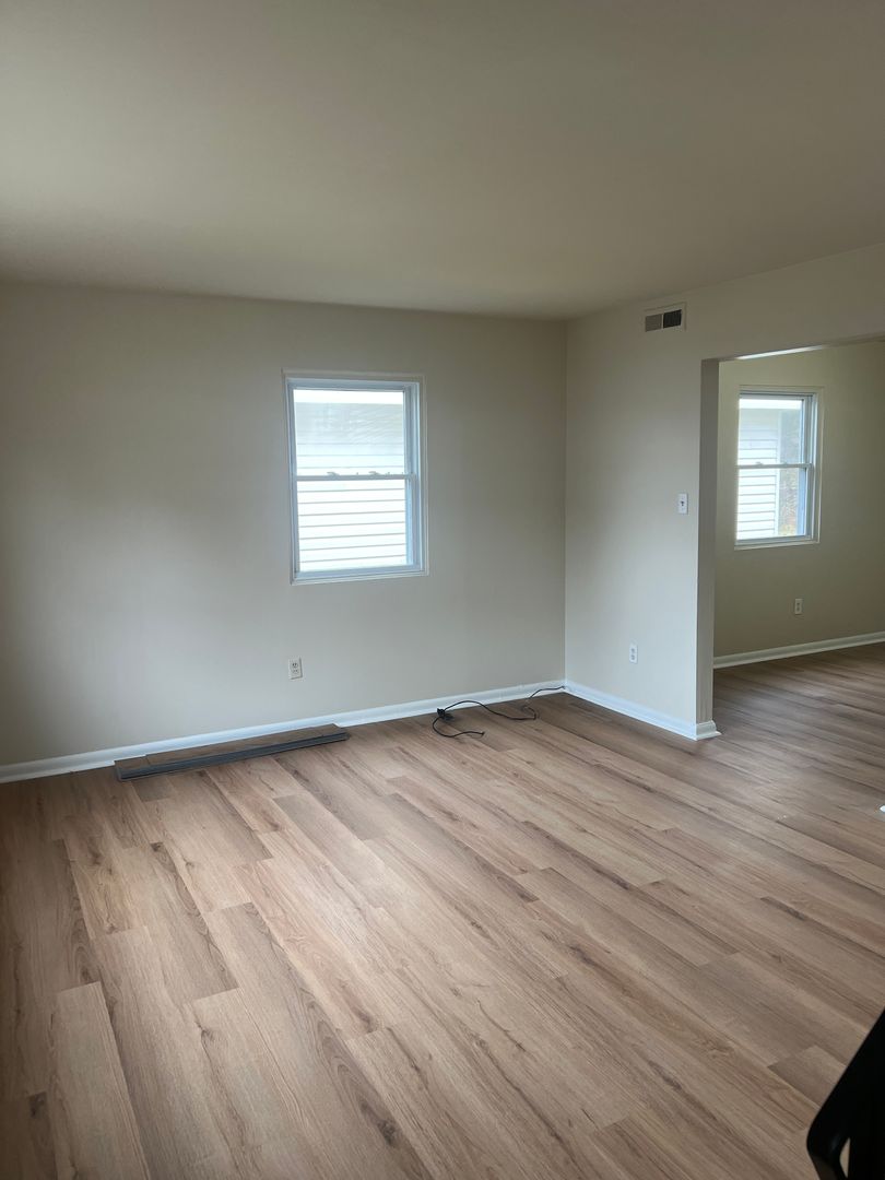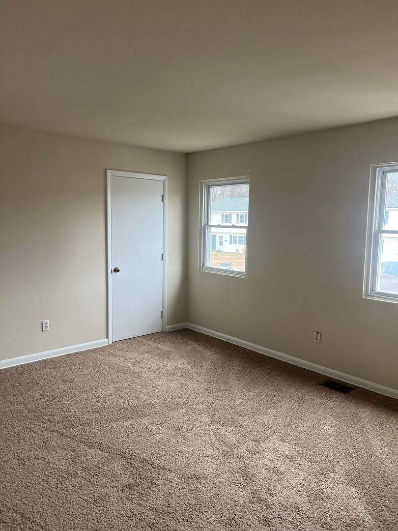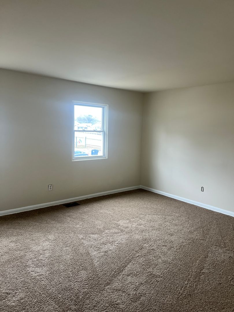 Freshly painted 2 bedroom 1 bath townhome featuring an eat-in kitchen with range and refrigerator. Living room with Brand New LVP flooring and Brand New Carpets up the stairs and in the bedrooms. Heating and cooling provided by heat pump and central air.