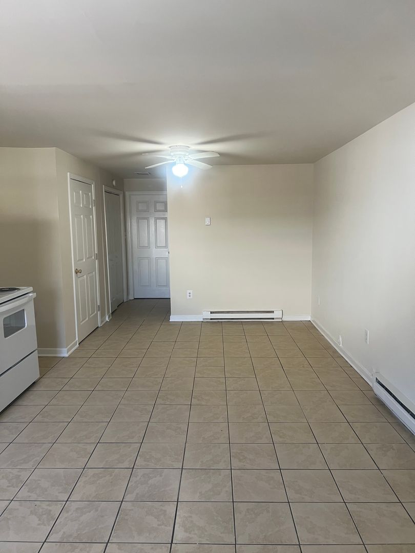 Freshly Painted 1 Bedroom 1 Bathroom Basement Apartment Featuring: Kitchen with Range & Refrigerator, Living Room. Ceramic Tile Floor throughout.