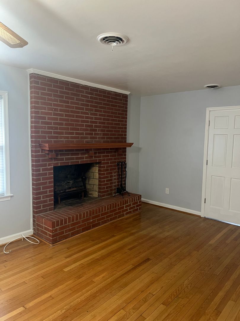 Freshly Painted 3 Bedroom Brick Rancher Featuring: Living Room with Fireplace (Note: Fireplace is not operable), Kitchen with Appliances (Refrigerator, Range, Dishwasher, & Microwave "AS IS"), 3 Spacious Bedrooms with their own closet, 2 Full Bathroom, Laundry area with Washer & Dryer hookups located in bathroom, Attic for Storage, Partially Fenced in Backyard with Shed, and spacious enclosed back porch. The Home has Hardwood Floors, Brand New Tile & Mini Blinds throughout.