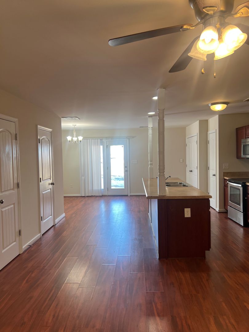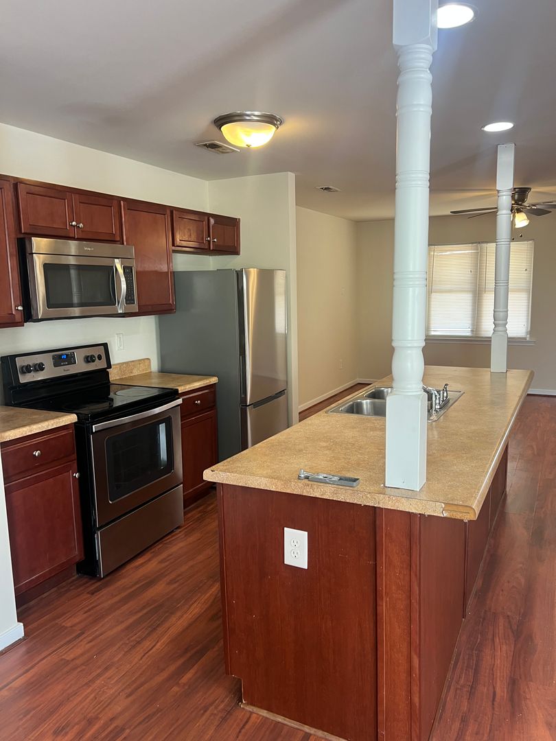 Welcome to this Freshly painted 2 story home featuring 3 bedrooms and 2 1/2 Baths. Downstairs features a open floor plan, living room, dining area and kitchen with a range, new refrigerator, dishwasher, microwave and pantry, half bathroom and laundry room with *washer & * dryer. (washer and dryer are in "as is" condition - no maintenance or guarantee on appliances). Upstairs features 3 bedrooms and 2 full bathrooms. The house has laminate flooring and professionally cleaned carpet throughout. There is a shortage shed in the backyard. Close to interstate, restaurants, shopping, and more!