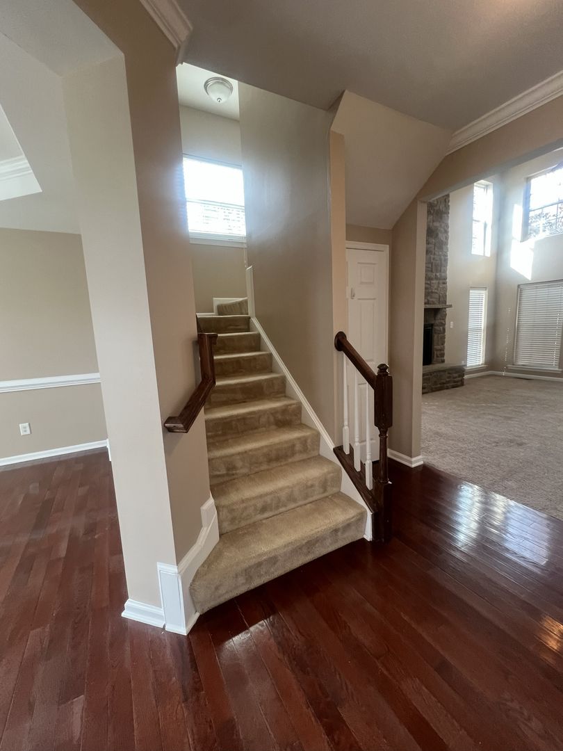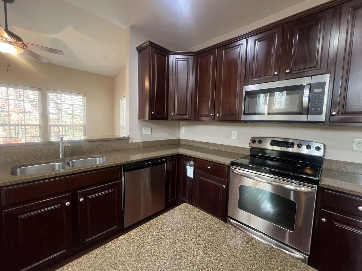 3 Story Home Featuring on the 1st Floor- Entrance Foyer, Formal Dining Area, Living Room with Ceiling Fan and a Two Story Stone Gas Fireplace that Opens up to the Breakfast Nook and Kitchen. Kitchen has Breakfast Bar, Center Island, Electric Range, Refrigerator, Dishwasher, Microwave & Pantry, Laundry Room with Washer & Dryer Hookups. On the 2nd Floor is the Master Suite including a Private Master Bathroom with dual solid surface vanities, large soaking tub, separate shower and huge walk-in closet, 2 Spacious Bedrooms and the Hall Bathroom. On the 3rd Floor is the Loft Area, Full Bathroom and 4th Bedroom. The Home has Carpet & Hardwood Floors throughout.